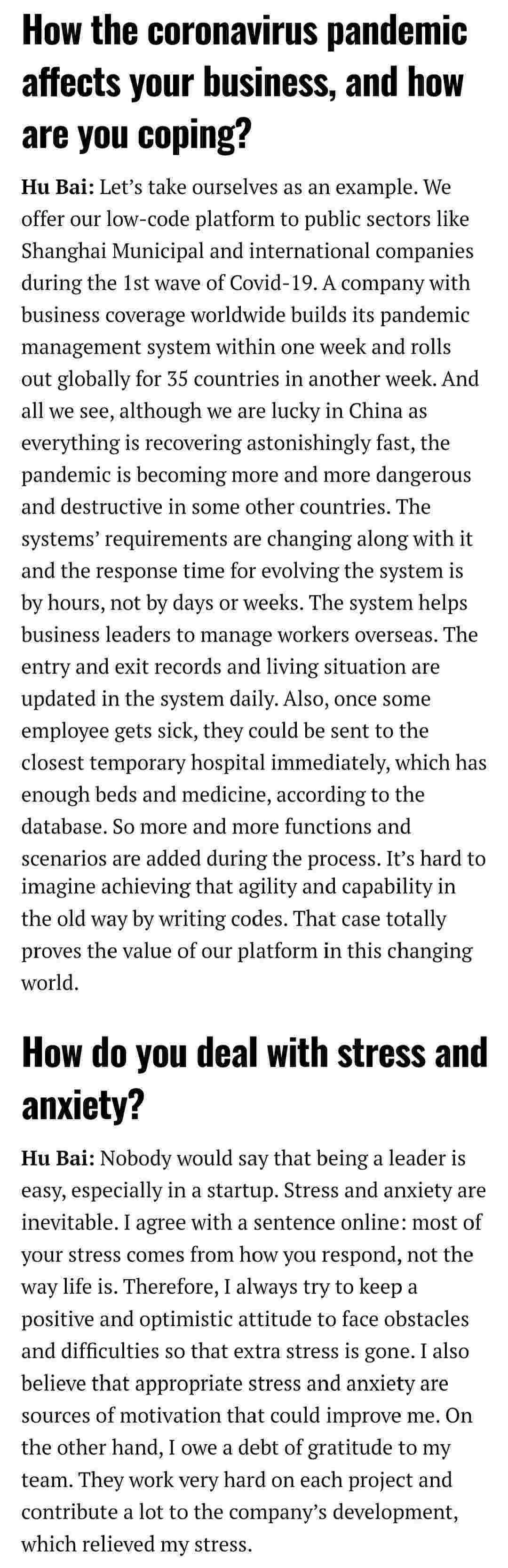 2021年年初,,,爱湃斯科技CEO胡柏受邀接受法媒Startup.info的专访,,与Startup info的读者分享了自己的创业经历、、、以及低代码平台圆梦钱包的创新之处。。。